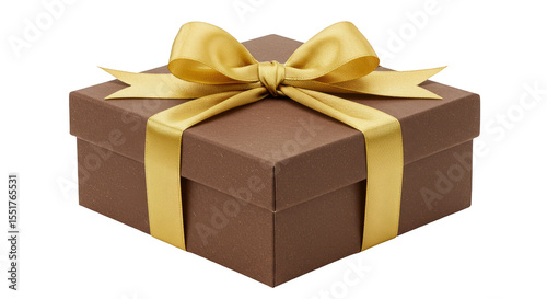 Isolated Gift Box With Golden Ribbon Brown Glittering on Transparent BG