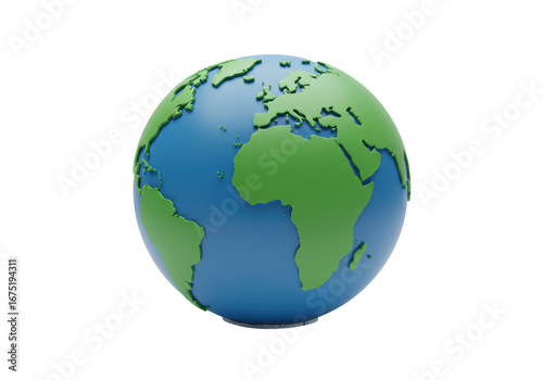 Isolated globe displaying green continents and blue oceans in three-dimensional view