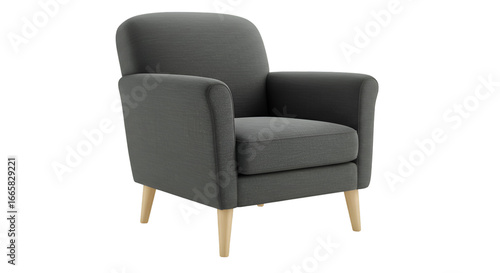 Isolated Gray Fabric Armchair with Wooden Legs on Transparent Background