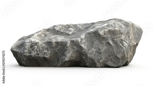 Isolated gray rock, rough texture, irregular shape, studio shot on white background.
