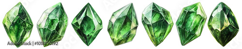 isolated illustration of green emerald gemstone crystals