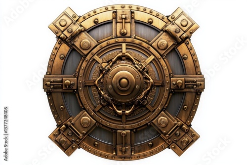 Isolated image of a sleek metallic bank vault door, perfect for financial themes.