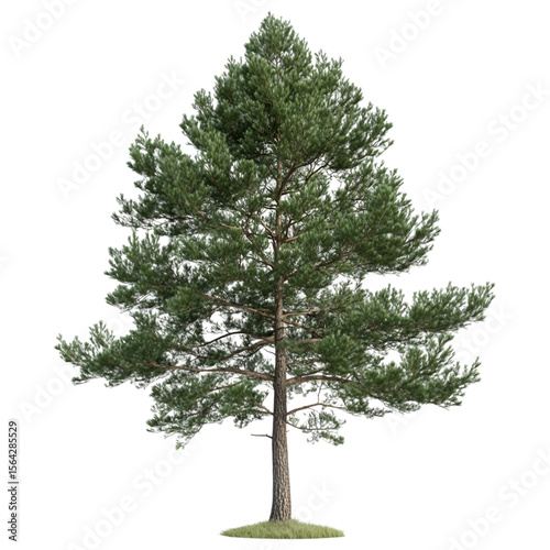 Isolated image of a tall pine tree with lush green needles and a sturdy brown trunk against a white background. Generative ai.