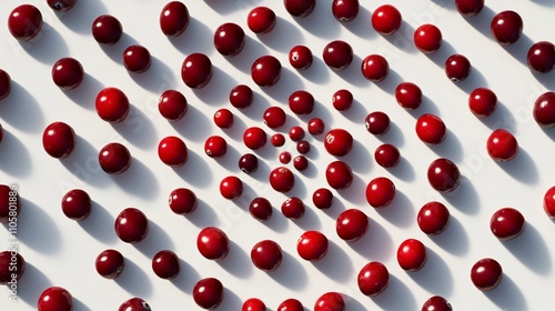 Isolated image of cranberries arranged in a spiral pattern, with soft shadows
