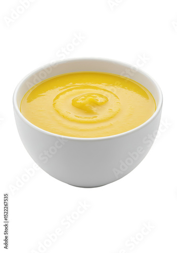 Isolated Image of Yellow Creamy Soup in White Bowl on Transparent