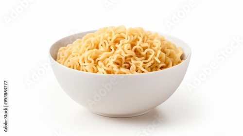 Isolated instant noodles in white bowl. Cooked instant noodles with vegetables in bowl isolated on white background. Neural network ai generated art