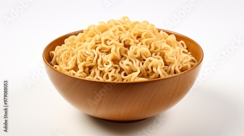 Isolated instant noodles in white bowl. Cooked instant noodles with vegetables in bowl isolated on white background. Neural network ai generated art