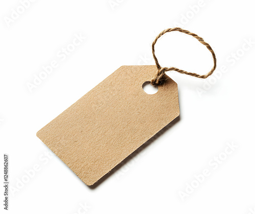Isolated kraft paper tag with natural fiber string, perfect for showcasing a brand or promotional message against a clean white background