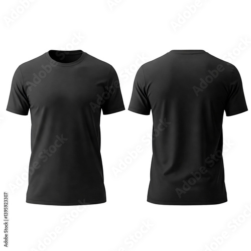 Isolated male Black T-Shirt Mockup: Front and Back View on Light Background for Apparel Design Presentation and Product Display