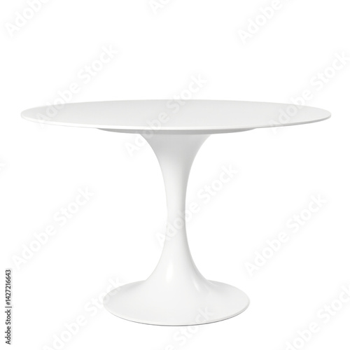 Isolated modern round pedestal dining table in white finish perfect for contemporary interiors