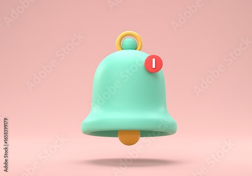 Isolated Notification Bell Icon with Alert Indicator Displaying New Messages and Updates on Light Pink Background