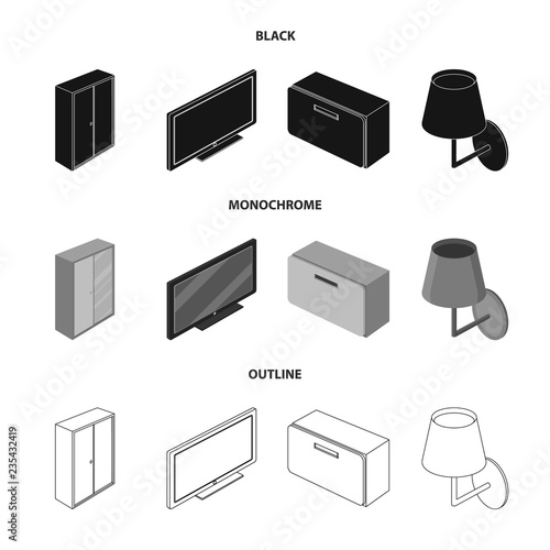 Isolated object of bedroom and room symbol. Collection of bedroom and furniture vector icon for stock.