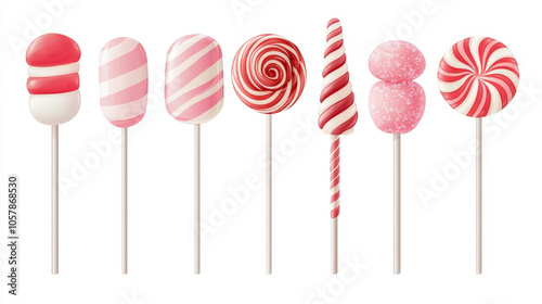 Isolated on a white background, this vector set includes an assortment of sweets such as candies, lollipops, wrapped sugar caramels, gums, and twisted marshmallows on sticks, along with spiral lollipo