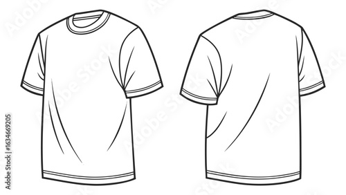 Isolated on white background, a blank white tshirt template with front and back views for apparel design and fashion mockups