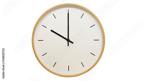 Isolated on white background Minimalist style wooden wall clock, showing time at 10:00 or 22.00.