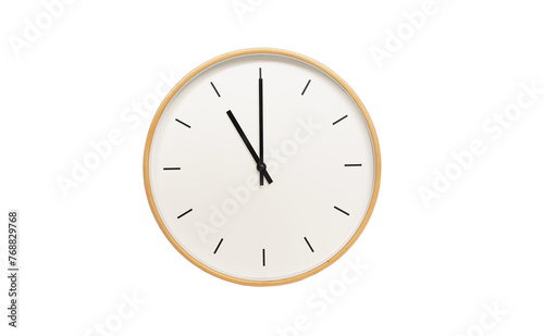 Isolated on white background Minimalist style wooden wall clock, showing time at 11.00 or 23.00