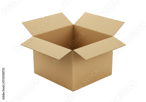 Isolated open cardboard box for packing goods and shipping items, brown, medium-sized