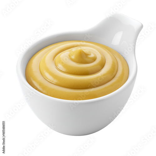 Isolated Photo Of Mustard Sauce In White Bowl Against Transparent Background