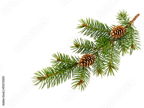 Isolated pine. Pine branch with cones isolated on transparent background