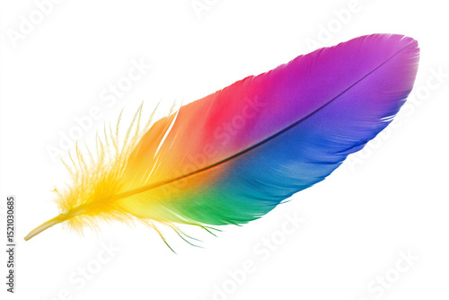 Isolated rainbow colored feathers on white background, vibrant, bright, decorative, multi-colored feathers, natural texture