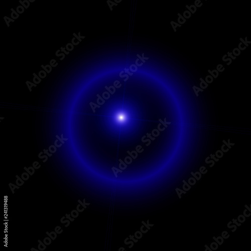 Isolated realistic lens flare visual effect on black night background. Space star.