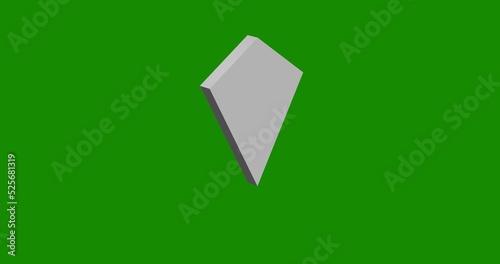 Isolated realistic white kite symbol front view with shadow. 3d illustration on green chroma key background