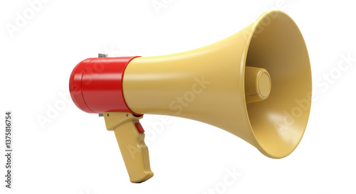Isolated Red and Yellow Megaphone Loudspeaker with Handle