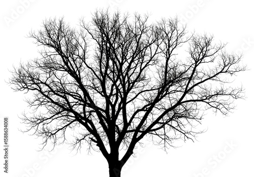 Isolated Silhouette of Bare Tree with Intricate Branches