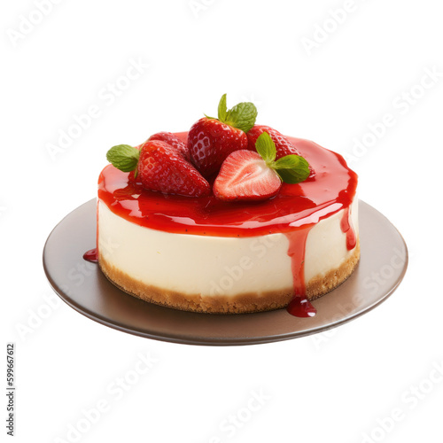 isolated slice of Cheesecake with Strawberry compot, Food-themed, photorealistic illustrations on a transparent background cutout in PNG. generative AI
