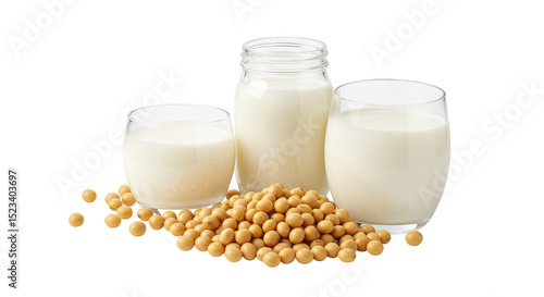 Isolated Still Life of Soy Milk with Pile of Soybeans Transparent
