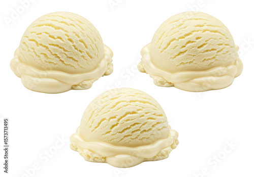 Isolated Three Vanilla Ice Cream Scoops Refreshment Dessert on PNG