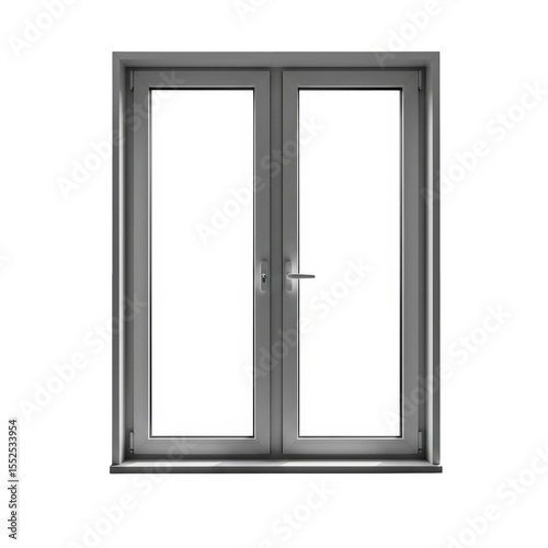 Isolated Transparent Background of Aluminum Double Window Door Frame
