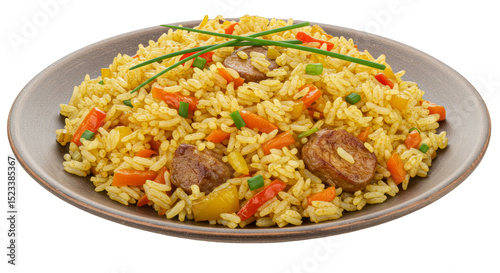 Isolated Transparent Background of Rice Dish with Meat and Vegetables