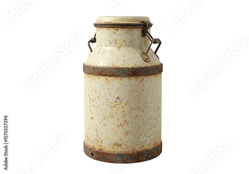 Isolated Transparent Background of Rustic Metal Milk Can with Rust