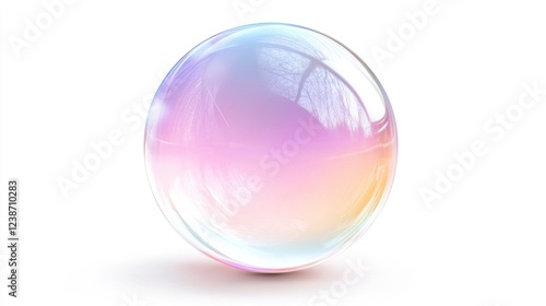 Isolated transparent soap bubble with colorful reflections on white background artistic photography minimalist style