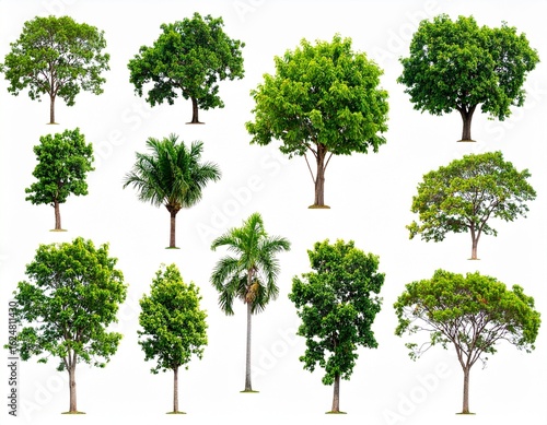isolated tree green set is located on a white background. Collection of isolated tree