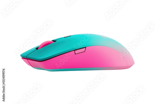 Isolated Turquoise and Pink Ergonomic Computer Mouse