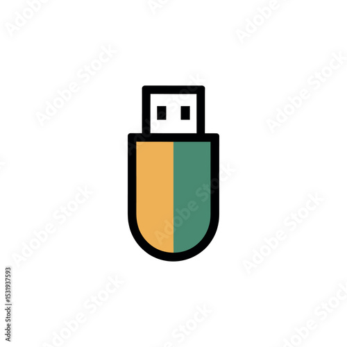 Isolated USB Flash Drive Icon with Orange and Green Fill on White Background