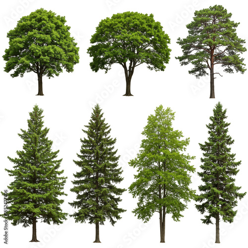 Isolated Various Tree Cutouts with Green Leaves in Transparent Background