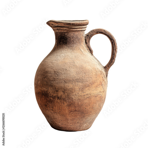 Isolated Weathered Clay Jar with Handle and Uneven Surface