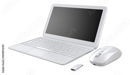 Isolated White Laptop with Wireless Mouse on Transparent Background