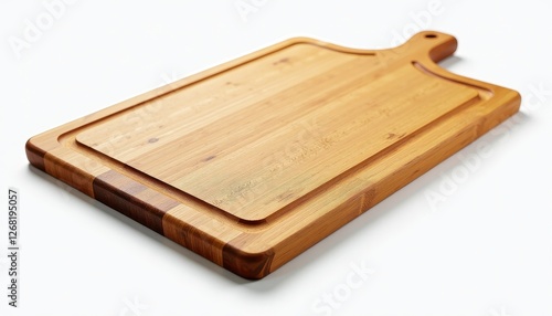 Isolated wooden cutting board on a pristine white background, showcasing natural elegance and craftsmanship. A wooden cutting board on a white background.