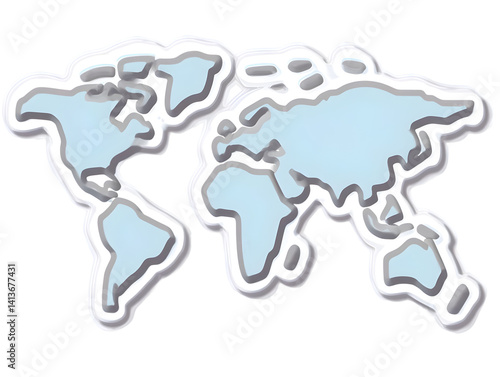 Isolated World Map Illustration In Blue And White On Transparent Background