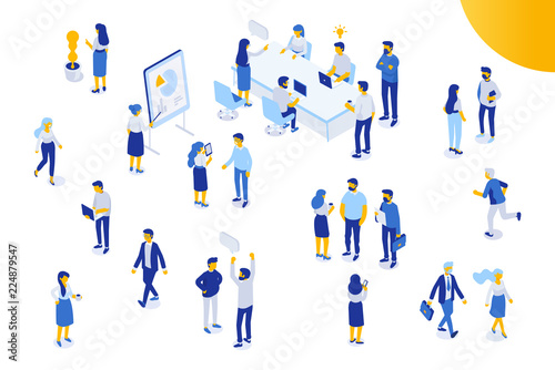 Isomeric office people vector set. Office life. Flat vector characters isolated on white background.