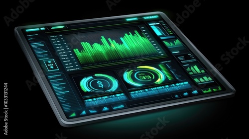 Isometric art of a financial dashboard with stock market charts, analytics, and trading data, capturing the essence of modern finance and investment platforms.