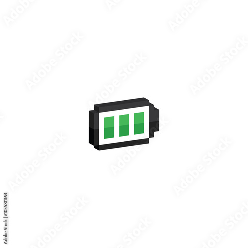 isometric battery charge icon 8 bit, pixel art energy battery icon for game logo.