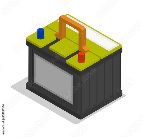 Isometric Car battery. Maintaining battery power. Maintenance in car repair shop. Realistic 3D vector isolated on white background