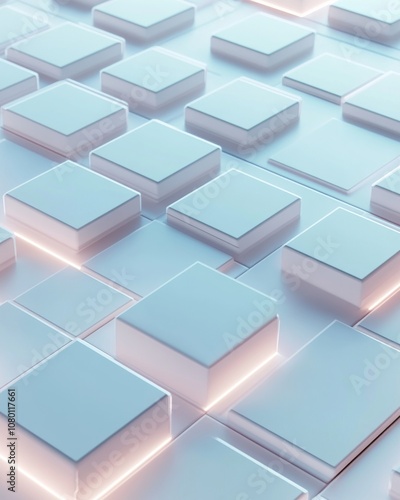 Isometric Clean Minimalistic Tech Ground Scene, Tiled Grid, Octane Rendering, Light Blue, 3D, Transparent Texture, Studio Lighting, Axially Symmetric, C4D, High Quality, 4K Resolution