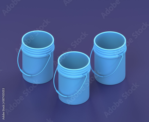 Isometric cleaning and painting bucket on blue background, single color workshop tool, 3d rendering