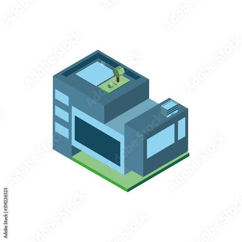 Isometric grey city building with pool and tree vector design
